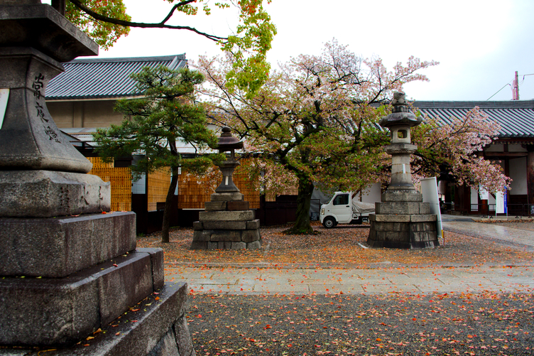 This collection of stone lanterns are to the west of the north gate of Tō-ji temple in Kyoto.