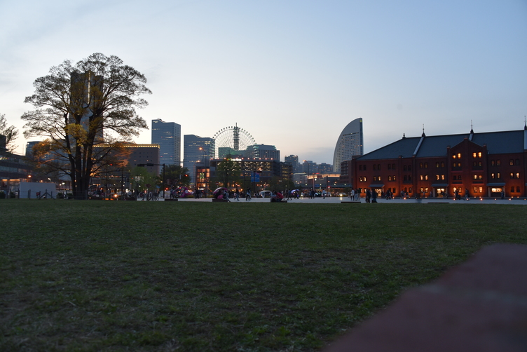 Looking northwest back towards the Minato Mirai area from the Red Brick Warehouses in Yokohama.