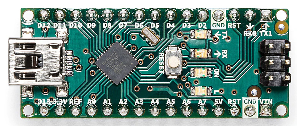 The Arduino Nano microcontroller is a small (45mm x 18mm) board that has approximately 30 Kbytes of flash memory available for program instructions and static data and approximately 2 Kbytes of RAM for runtime variables and stack. While these constraints are tight, they are still sufficiently generous to enable the functionality needed. A more complicated configuration, including an OLED display, could be handled by an Arduino Mega (which could support up to 15 tracks) or an Arduino Due.